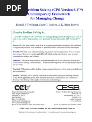 Https Www Sciencedirect Com Science Article Pii S1877042813005983 Pdf Md5 7ecc15e96543d1bb3683632313c29723 Pid 1 S2 0 S1877042813005983 Main Pdf from (1997), the creative problem solving framework : 1991, 1992 components in some articles and chapters (in an attempt to make. (isaksen and treffinger 1987) changed their description of the cps framework to include these three components of activity as well as the six stages. Isakesen and treffinger (1985) isaksen, dorval and treffinger (1994 and 1998). Isaksen, s g and d. The basic course (isaksen & treffinger, 1985). 1988 sociology 370 lecture, university of wisconsin—lacrosse, january 27. (1985), creative problem solving :